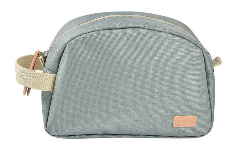 Poręczna kosmetyczka podróżna na akcesoria do pielęgnacji niemowląt francuskiej marki BEABA. Zapinana na suwak, z szerokim uchwytem na jednym z boków do wygodnego przenoszenia oraz do powieszenia w łazience lub przy toaletce. Oprócz stosunkowo pojemnej (24 x 17 cm) kieszeni głównej, wyposażona w dwie kieszonki wewnętrzne, ułatwiające segregację akcesoriów. Pomieści nie tylko niezbędne środki pielęgnacyjne, od maści po wilgotne chusteczki, cążki czy aspirator do nosa, ale również zapas pieluszek na zmianę czy ukochany gryzak maluszka, które to rzeczy warto mieć pod ręką podczas każdego spaceru. Materiał kosmetyczki jest wodoodporny i łatwy do czyszczenia (np. gąbką). Kosmetyczka może służyć dziecku przez wiele lat, również kiedy będzie starsze. Sprawdzi się np. podczas wyjazdów na wakacje czy nocowania u przyjaciół. Utrzymana jest w ponadczasowej pastelowej kolorystyce: zgaszonej szałwiowej zieleni z beżowym suwakiem i rączką oraz skórzanymi detalami w brzoskwiniowym odcieniu różu.