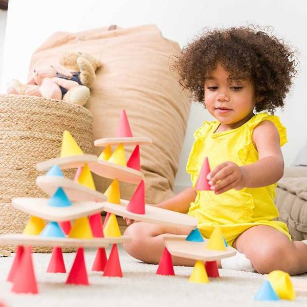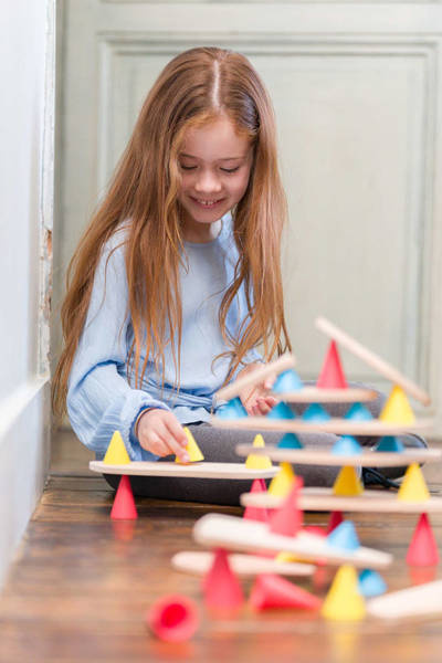 Oryginalne połączenie elementów drewnianych i silikonowych zapewnia przyczepność, która pozwala graczom na zupełnie nowe podejście do zabawy i swobodne eksperymentowanie. Zadaniem silikonowych klocków jest bowiem stabilne podtrzymywanie drewnianych elementów, nie tylko w poziomie, ale także po skosie. Zestaw zapewnia nieograniczoną zabawę, aby każdy mały artysta mógł tworzyć swoje wielopoziomowe, niebanalne i niepowtarzalne konstrukcje – zarówno budowle, jak mosty, wieże, czy estakady, ale także postacie czy zwierzęta i inne kształty, które podpowie mu wyobraźnia!