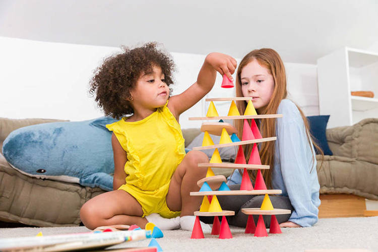W tej wersji główną zasadą gry jest… brak zasad, a zadaniem dla dzieci – budowanie, tak po prostu. Warto pamiętać, żeby, niezależnie od tego, co podpowie twórcom wyobraźnia, dolną deseczkę podtrzymywały co najmniej trzy stożki – zapewni to większą stabilność całej konstrukcji.