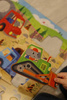 Zestaw puzzli podłogowych Plac budowy amerykańskiej marki MUDPUPPY składa się z 25 bardzo dużych, łatwych do układania elementów, w tym 6 elementów specjalnych w unikatowych kształtach, a są to: wózek widłowy prowadzony przez aligatora, spychacz prowadzony przez słonia, zając z młotem pneumatycznym, tygrys ze szpadlem, niedźwiedź z łopatą oraz znak drogowy z grafiką betoniarki. Ułożony z nich sporych rozmiarów (56 x 56 cm) obrazek przedstawia tętniący życiem plac budowy. Układankę można wykorzystywać do snucia opowieści o procesie budowania i zapoznania dziecka z różnymi zawodami i pojazdami specjalnymi. Wyjątkowy pomysł, design i przyjazne barwy dodatkowo zachęcają do zabawy.