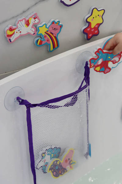 Piankowe figurki do kąpieli Marzenia jednorożca amerykańskiej marki MUDPUPPY są wykonane z miękkiego, łatwego do czyszczenia i szybkoschnącego materiału. Oprócz jednorożców wśród 20 oryginalnych kształtów znajdują się także m.in. kwiaty, gwiazdki, księżyc, zamek, motyl, kotek w balonie czy kotorożec z kometą. Figurki po zanurzeniu w wodzie zyskują „magiczne” właściwości i dają się przyklejać do wanny lub płytek w łazience. Zabawka zachwyca i rozbudza wyobraźnię, pozwala na tworzenie wielu ciekawych historii lub odgrywanie teatrzyków. Autorką wzorów jest francuska artystka i autorka książek Clémentine Dérodit. Zabawka zapakowana jest w estetyczną, szybkoschnącą siateczkę mesh z przyssawkami, w której można łatwo przechowywać jej elementy. Idealnie nadaje się na prezent. Stanowi doskonałe uzupełnienie magicznej książeczki do kąpieli Marzenia i jednorożce, przeznaczone dla starszych dzieci.