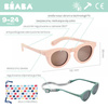 Okulary przeciwsłoneczne z kolekcji Delight francuskiej marki BEABA przeznaczone są dla dzieci powyżej 9. miesiąca życia. Zaprojektowane z naciskiem na praktyczność, bezpieczeństwo i wygodę użytkowania, a przede wszystkim ochronę oczu malucha. Antypoślizgowe, zakrzywione ramiona nie uciskają głowy dziecka, są dobrze dopasowane i pozostają na miejscu, także podczas typowych dziecięcych aktywności. Profilowanie strefy nosa nawiązuje do stylu vintage, jest uniwersalne i wyjątkowo stabilne, a ponadto wraz ze strefą skroni wykonane zostało w technologii Fit z elastycznego, trwałego tworzywa, które dopasowuje się do kształtu twarzy. Szczególny, obły kształt rozbudowanych oprawek zabezpiecza oczy malucha przed promieniami słonecznymi wpadającymi również z boku. Specjalne, nietłukące się „szkiełka” w kolorze ciemnobrązowym to soczewki kategorii 3, która gwarantuje maksymalną, 100% ochronę przed promieniami UV. Nadają się do ekspozycji na słońce również na plaży czy w górach. Okulary posiadają regulowane zauszniki 360° oraz elastyczną opaskę, którą można w razie potrzeby zamocować na klik (dzięki silikonowym zaczepom) dla optymalnego komfortu.