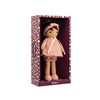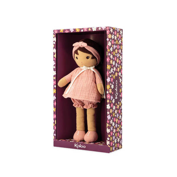 Urocza lalka-przytulanka Amandine francuskiej marki KALOO to idealna pierwsza przyjaciółka Twojego maluszka. Jest niezwykle miękka, piękna, perfekcyjnie wykończona i przede wszystkim całkowicie bezpieczna dla dziecka już od pierwszych dni jego życia. Ma słodką minkę, urocze, duże brązowe oczy, stylową ciemnobrązową fryzurkę i beżowy odcień skóry (ma przypominać skórę dziecka, spędzającego dużo czasu na świeżym powietrzu). Jej śliczna różowa tunika i szorty oraz opaska z kokardką na głowie wykonane zostały z przyjemnego w dotyku muślinu. Na wstążce pod szyjką lalki znajdziesz miejsce na imię Twojego dziecka, by uczynić tę maskotkę jeszcze bardziej wyjątkową. Na nóżkach przytulanka ma jasnoróżowe buciki z haftowanymi guziczkami. Jest spora, ale nadal poręczna – ma 32 cm – dla małych rączek. Stworzona do tulenia, usypiania, uspokajania, zabierania na spacery i na dłuższe wyprawy.