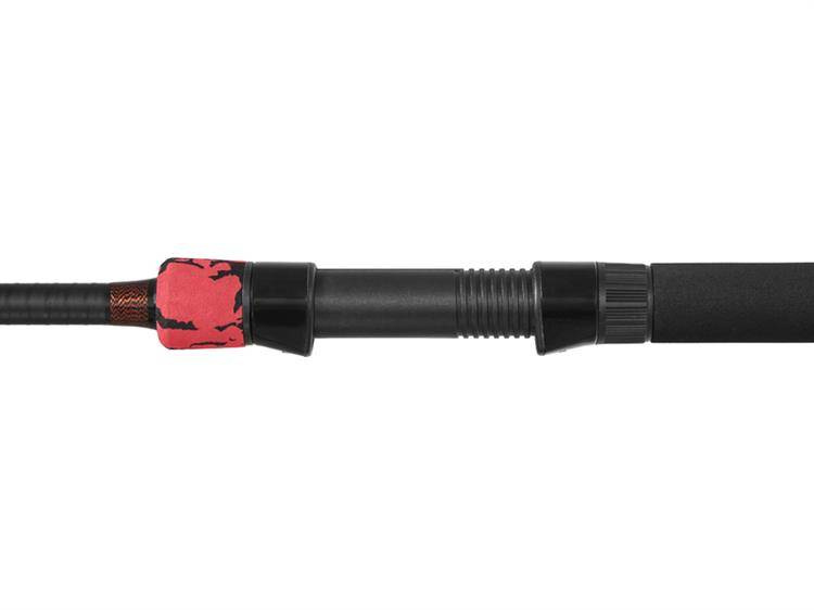 Pełna rękojeść wykonana z formowanej pianki EVA z czerwono-czarnym zakończeniem przeznaczona jest do łowienia na ciężkie przynęty. Matowy, czarny blank jest wzmocniony uzwojeniem na całej długości, dzięki czemu jest jeszcze bardziej wytrzymały i bardziej odporny na uszkodzenia.