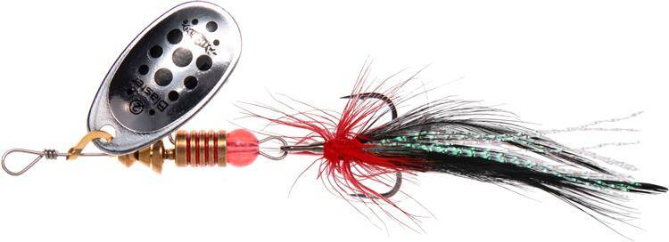 Błystka typu Blaster uzbrojona w dodatkowy chwost okalający kotwiczkę, dzięki dodatkowemu elementowi wabiącemu zwiększa się skuteczność przynęty, szczególnie przy połowie okoni oraz pstrągów.