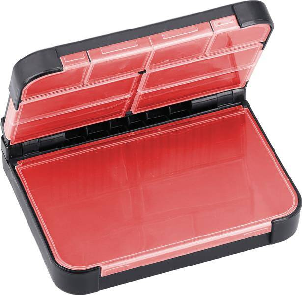 Solidne dwustronne pudełko na drobne akcesoria, które ułatwia organizację sprzętu wędkarskiego. Świetnie sprawdza się do przechowywania agrafek, haków czy mniejszych przynęt. Posiada 8 mniejszych przegródek oraz 1 dużą z możliwością adaptacji.