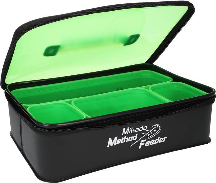 Pojemnik EVA wyposażony w dodatkowe sitko ułatwiające odpowiednie domoczenie pelletu podczas wędkowania techniką Method Feeder. Wystarczy wsypać suchy pellet do pojemnika, zalać wodą i za pomocą sitka odsączyć po namoczeniu.
