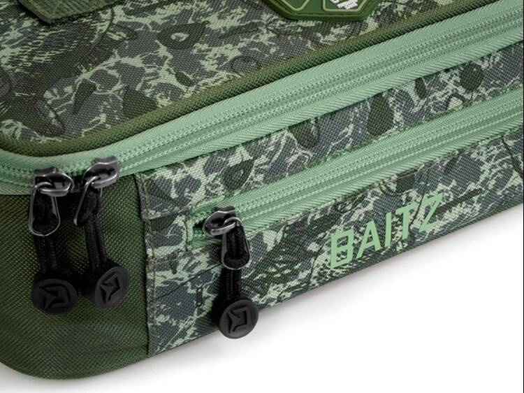 BAITZ został zaprojektowany do przechowywania i transportu przynęt dipowych. Zawiera 6 przezroczystych plastikowych pojemników z pokrywką i uszczelką. Uszczelki na pojemnikach umożliwiają przechowywanie dipowanych kulek proteinowych, pelletu lub innych rodzajów przynęt. Wewnętrzne przegrody dzielą przestrzeń na 6 identycznych przegródek, które zabezpieczają przechowywane przedmioty.