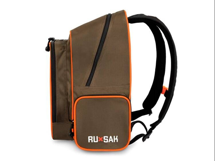 Plecak został zaprojektowany tak, aby zapewnić dużo miejsca do przechowywania pudełek z przynętami, akcesoriów lub innego sprzętu potrzebnego do udanego łowienia. Dostęp do głównego schowka można uzyskać za pomocą zamka błyskawicznego wszytego pod kątem. Posiada również dwie kieszenie zapinane na zamek po bokach. W porównaniu do konwencjonalnych plecaków w podobnym przedziale cenowym, ten posiada kieszeń na zamek błyskawiczny z przodu, zawierającą plastikowe pudełko odpowiednie na przynęty lub koszyczki zanętowe. Plecak ma przezroczystą pokrywę, dzięki czemu zawsze widać, co jest w środku.