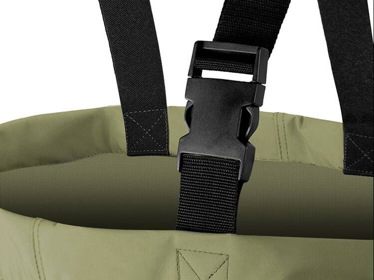 Oprócz standardowo regulowanych szelek, model ten posiada również odpinany pasek, który pozwala na jeszcze lepsze dopasowanie do sylwetki wędkarza. Kolejną dużą zaletą dopinanego paska jest ograniczenie możliwości szybkiego dostania się wody do woderów w razie upadku podczas brodzenia w wodzie.