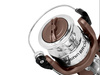 Delphin Bronz to stylowy, kompaktowy kołowrotek z przednim hamulcem. Występuje w kolorze ciemnego brązu połączonego z neutralnym brązem ze srebrnymi detalami i srebrną szpulą. Ten kołowrotek ma bardzo ładny design, jest niezawodny i niedrogi.