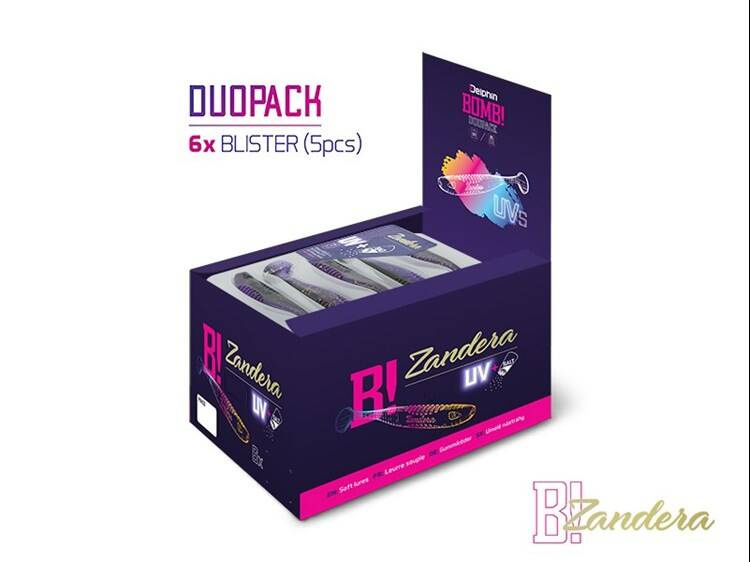 ZANDERA UVS to najbardziej renomowany model miękkich przynęt firmy Delphin. Udało nam się połączyć idealny kształt, najatrakcyjniejsze kolory i doskonałą cenę! Fantastyczny ruch przynęty zwabi nawet najbardziej przebiegłe drapieżniki. Cała koncepcja, od głowy po ogon i najdrobniejsze detale, dostosowana jest do łowienia drapieżników. Nie dajcie się zwieść nazwie, z Zanderą można zwabić znacznie więcej ryb niż tylko sandacze, również takich jak szczupaki, sumy czy okonie. Miękki charakter tej przynęty pozwala na bardzo płynne poruszanie się w każdej sytuacji, czy to jigowanie, czy bardziej naturalny ruch przynęty. Korpus został zaprojektowany tak, aby był ząbkowany z dwóch głównych powodów: po pierwsze, podwodne wibracje są bardzo atrakcyjne dla drapieżników; po drugie, zawsze wiesz dokładnie, gdzie włożyć haczyk i gdzie opuszcza ciało. Z tyłu i na brzuchu znajduje się nacięcie na ostrze haczyka, które umożliwia łowienie nawet w najbardziej zarośniętych wodach.