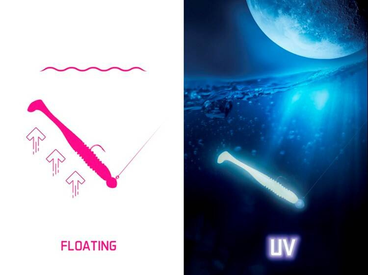 ZANDERA Flexifloat jest dostępna w szerokiej gamie najskuteczniejszych wariantów kolorystycznych, wybranych na podstawie długoterminowych testów w zbiornikach wodnych w całej Europie. Co więcej, kolory te są aktywne na promieniowanie UV, co pozwala na bardziej intensywne odbijanie światła słonecznego pod wodą, dzięki czemu przynęty wyróżniają się nawet na dużych głębokościach lub w warunkach słabego oświetlenia. Nie zapomnieliśmy również o śladach zapachowych, które gumowe przynęty pozostawiają w wodzie. Przynęty zawierają sól i aromat rybny, dzięki czemu są nieodpartym celem dla drapieżników.