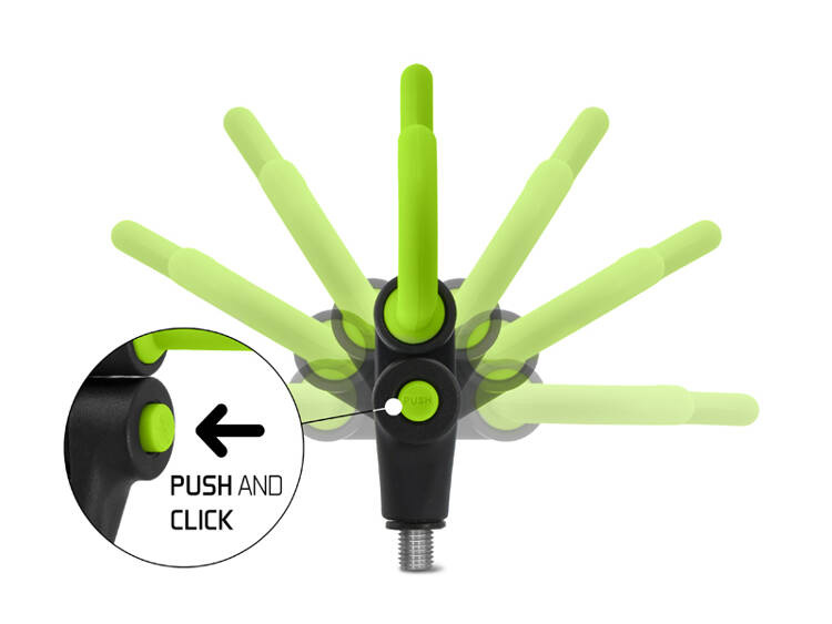 Widełki w kształcie litery "L" to świetne narzędzie dla każdego wędkarza feederowego. Pozwala utrzymać wędkę nawet w przypadku mocnego brania. Mechanizm na spodzie pomaga ustawić pożądany kąt widełek. Ich szerokość wynosi 17 cm. Posiadają uniwersalny gwint, kompatybilny z większością podpórek dostępnych na rynku. Zielono-czarny kolor idealnie pasuje do serii feederów REAXE.