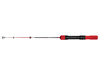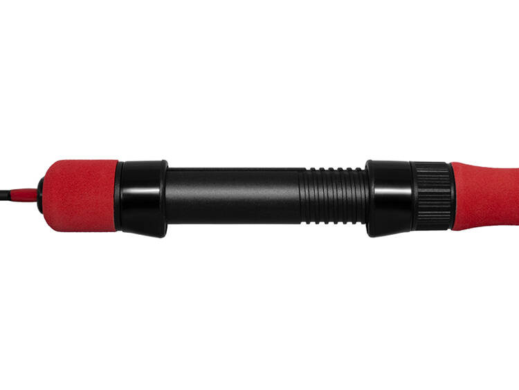 Wędai DOTZ została zbudowana na wysokiej jakości blanku odpornego na mróz, zapewniając maksymalną przyjemność podczas walki nawet z mniejszymi drapieżnikami. Szczytówka w czerwonym kolorze ułatwia zauważenie brania i jest dobrze widoczna na białym tle. Przelotki są rozmieszczone wzdłuż całej długości blanku, aby jak najlepiej wykorzystać potencjał wędki. Wędka wyposażona jest w wysokiej jakości uchwyt na kołowrotek typu DPS, w którym bez problemu zamontujemy każdy kołowrotek przeznaczony do łowienia podlodowego. Wędzisko ma efektowną czerwoną rękojeść z pianki EVA, która jest łatwa w pielęgnacji i przyjemna w dotyku.