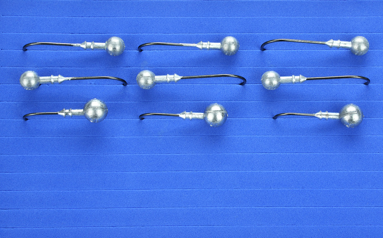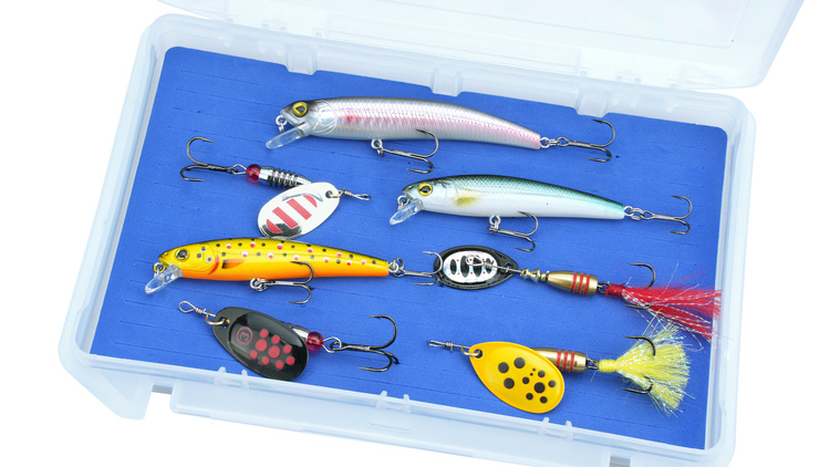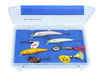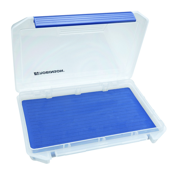 Pudełko plastikowe na przynęty z pianką do przechowywania główek jigowych i przynęt spinningowych.
