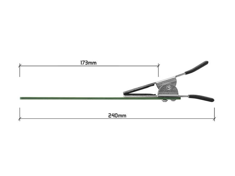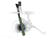 Klips na żyłkę do wywózki. Dzięki pomysłowemu kształtowi klipsa można go przymocować do wędki, a dłuższe ramię dosięgnie krawędzi szpuli kołowrotka, zapobiegając splątaniu i wypadaniu żyłki. Wystarczy zamocować klips, otworzyć kabłąk i umieścić zestaw w wybranym miejscu.