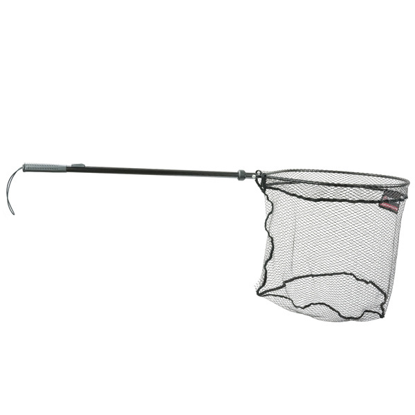 Podbierak spinningowy z łamaną sztycą. Został wyposażony w mechanizm pozwalający rozłożyć go i złożyć przy użyciu jednej ręki, co ułatwi podebranie ryby w pojedynkę. Na rączce jest przesuwny przycisk, który po przesunięciu zwalnia blokadę i podbierak się składa. Długa sztyca pozwoli sięgnąć rybę nawet w trudnych warunkach. Zastosowaliśmy bardzo dobrej jakości gumowaną siatkę o średnicy oczek 10 mm. Występuje w dwóch wielkościach