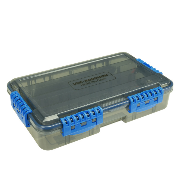 Feeder box Classic to wytrzymałe pudełko z wodoodporną uszczelką zapewniającą ochronę sprzętu przed wilgocią. Wyposażone jest w 4 mocne klipsy zamykające i regulowane przegródki, które pozwalają na elastyczne dopasowanie przestrzeni do różnych akcesoriów wędkarskich. Idealne rozwiązanie dla wędkarzy ceniących porządek i trwałość.