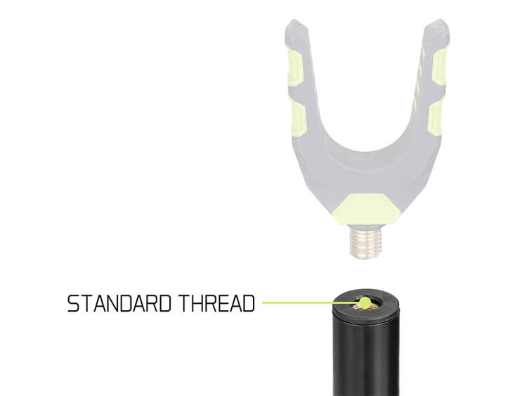 UniFIX EASY ma uniwersalny gwint w górnej części, kompatybilny z większością przednich lub tylnych uchwytów na wędki.