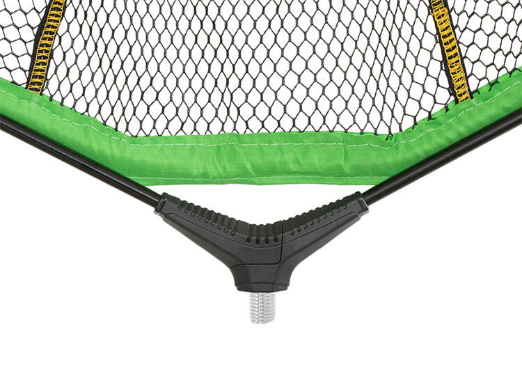 Siatka podbieraka FloateR FoldCUBE pokryta jest gumą, dzięki czemu nie chłonie wody i szybko schnie. Dodatkowo jest pokryta zieloną tkaniną na całej ramie od spodu, aby zwiększyć trwałość.