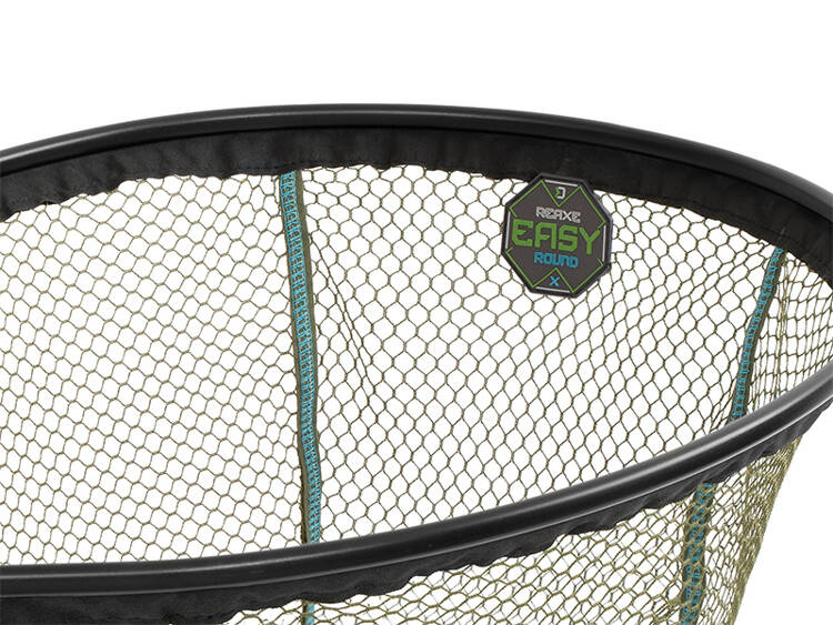Owalny kosz podbieraka z serii REAXE z lekką, ale wytrzymałą czarną aluminiową ramą. Siatka jest zielona z wysokiej jakości przeszyciami. Jest miękka, a zatem bardziej delikatna dla ryb niż siatka gumowa lub nylonowa. Dodatkowo jest pokryta czarną tkaniną na całej ramie od spodu, aby zwiększyć trwałość.