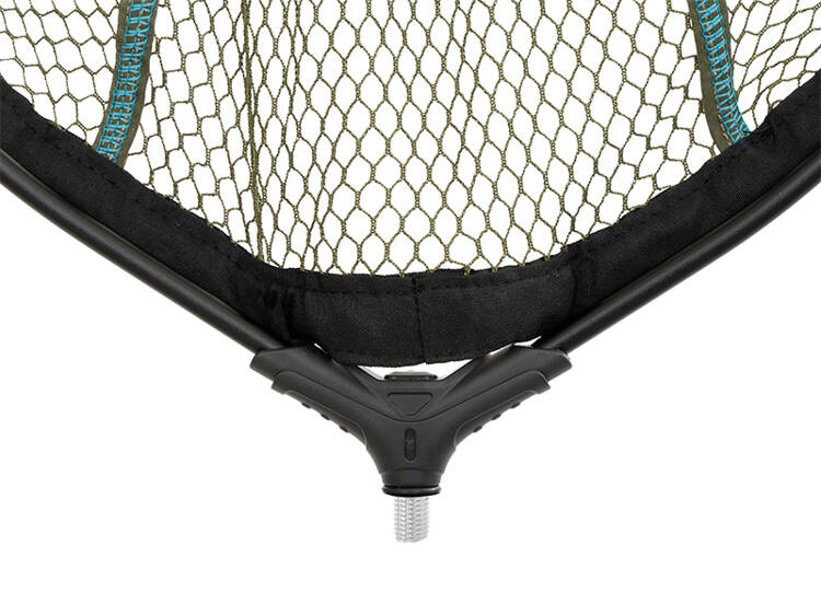 Owalny kosz podbieraka z serii REAXE z lekką, ale wytrzymałą czarną aluminiową ramą. Siatka jest zielona z wysokiej jakości przeszyciami. Jest miękka, a zatem bardziej delikatna dla ryb niż siatka gumowa lub nylonowa. Dodatkowo jest pokryta czarną tkaniną na całej ramie od spodu, aby zwiększyć trwałość.