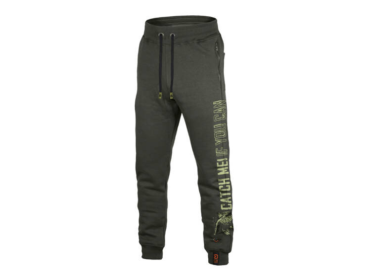 Spodnie dresowe Catch me CARP NX są ozdobione po lewej stronie przyciągającą wzrok grafiką z napisem „CATCH ME IF YOU CAN” i żerującym karpiem . W połączeniu z bluzą z kapturem i koszulką otrzymujesz stylowy strój, w którym poczujesz się wyjątkowo komfortowo nad wodą.