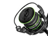 Czarna metalowa szpula z zielonymi detalami jest szeroka i płytka, co stanowi idealne połączenie do technik feederowych. Nie trzeba na nią nawijać dużej ilości cienkiej żyłki. Po obu stronach znajdują się wysokiej jakości czarne metalowe klipsy do mocowania żyłki. Pod szpulą znajduje się błyszczące, zielone zabezpieczenie przed ześlizgiwaniem się żyłki, które zapobiega jej plątaniu. Hamulec kołowrotka jest wystarczająco czuły, aby używać go z miękkimi wędziskami feederowymi.