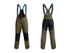 Jedną z głównych zalet spodni jest podwyższony pas w dolnej części pleców, który zapewnia doskonałą ochronę tej części. Górna tylna część i kolana są wzmocnione czarną tkaniną, która zapobiega uszkodzeniom w tych narażonych na zużycie obszarach. Elastyczne szelki z zapięciem na zatrzask zapewniają dobre dopasowanie spodni i zapobiegają ich zsuwaniu się. Spodnie są zapinane na wysokiej jakości zamek błyskawiczny i dwa metalowe zatrzaski, a wokół talii znajdują się szlufki na pasek. Spodnie można regulować u dołu za pomocą krytego zamka błyskawicznego i paska na rzep.
