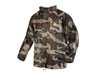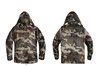 Zapięcie kurtki zabezpieczone jest wytrzymałym zielonym zamkiem błyskawicznym przykrytym materiałową zakładką z czterema plastikowymi zatrzaskami, co zwiększa ochronę przed deszczem. Kaptur jest wyposażony w sznurek ściągający, umożliwiający jego regulację w zależności od potrzeb; można go również zwinąć i schować w kołnierzu w specjalnej kieszeni zapinanej zamkiem błyskawicznym. Kołnierz jest podniesiony dla zabezpieczenia szyi i ramion oraz jest wyposażony w dwa dodatkowe zatrzaski do zapięcia kaptura.