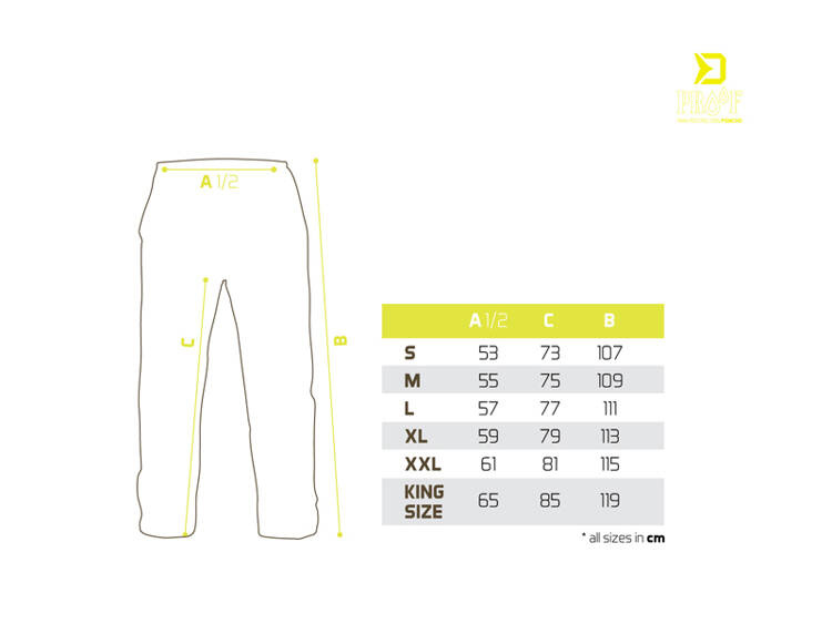 Posiadają elastyczny pas, ułatwiający szybkie zakładanie w razie potrzeby. Ogólny krój spodni jest luźny, dzięki czemu można je nosić na odzieży zimowej. W dolnej części znajdują się zatrzaski, pozwalające na ich zwężenie w razie potrzeby.