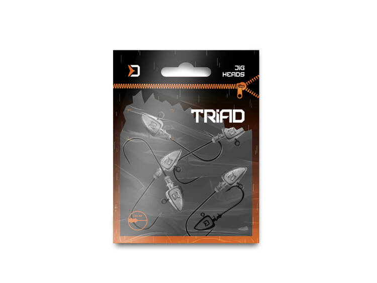 Oryginalny główka jigowa z kołnierzem do łowienia miękkimi przynętami w toni lub tuż nad dnem. Jak sama nazwa wskazuje, kształt główki jest trójkątny, aerodynamiczny, a przynęta stawia mniejszy opór. W ten sposób łatwo pokonuje podwodne przeszkody i płynniej porusza się w wodzie. Ponadto kształt główki bardzo dobrze komponuje się z sylwetką przynęty, dzięki czemu wygląda ona bardziej naturalnie. Główka ma cienki kołnierz z dwoma rzędami trójkątnych mikrozadziorów, które utrzymują przynętę na miejscu. Ponadto jest wyposażona w bardzo mocny i ostry hak.