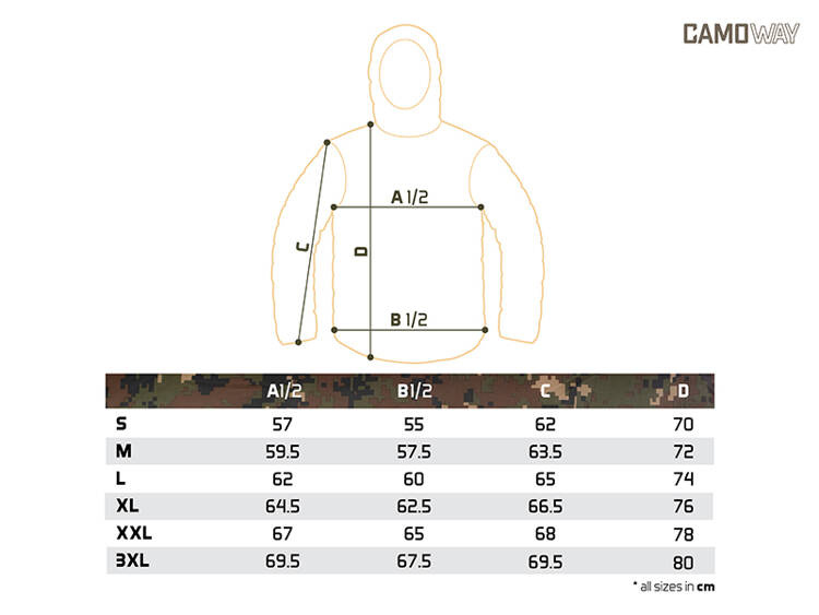 Kurtka CamoWAY posiada także kaptur, który można regulować za pomocą troczków ściągających. Rękawy są lekko zwężane na końcach i wyposażone w miękką gumkę zapewniającą dokładne dopasowanie wokół nadgarstków.