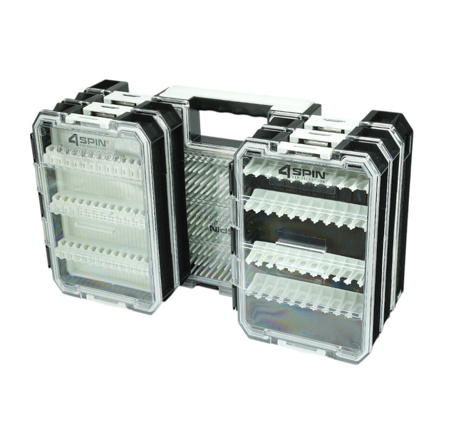 Niektóre przynęty spinningowe potrafią być bardzo drogie, warto więc zadbać o to by nie niszczyły się one w trakcie przechowywania i transportowania. Zapewnić to mogą prezentowane pudełka modułołowe na błystki, cykady i woblery. Pięć pudełek wykonanych jest z najwyższej jakości materiałów, są one niezwykle wytrzymałe i odporne na uszkodzenia. Mnogość opcji mocowania przynęt pozwoli dokładnie dobrać pudełko do wabików, jakie chcemy w nim umieścić. Dzięki systemowi specjalnych zamków można je dowolnie ze sobą łączyć, a dodając rączkę - mamy możliwość ich komfortowego transportowania. Pudełka sprzedawane osobno.