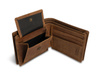 Portfel jest wykonany z naturalnej ciemnobrązowej skóry, która zapewnia lepszą trwałość i przyjemne uczucie w dłoni.