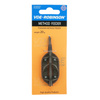 Podajniki VDE-Robinson to połączenie klasycznej, a zarazem bardzo przemyślanej konstrukcji. Owalny kształt nadaje idealną trajektorię lotu podczas zarzucania zestawu, a środkowe żebro wyprofilowane w łuk zapewnia odpowiednią ilość miejsca do ulokowania przynęty. Tworzywo, z którego wykonany jest podajnik jest bardzo solidne i wytrzymałe. Kamuflujący kolor powoduje, że koszyk doskonale maskuje się z dnem łowiska. Uzupełnieniem podajników jest gumowa foremka, dzięki której możemy idealnie przygotować zestaw do podania w łowisko. W pierwszej kolejności układamy przynętę z haczykiem na środku foremki, następnie zasypujemy odpowiednio przygotowaną zanętą lub pelletem. Całość dociskamy podajnikiem i wyciągamy zestaw z foremki. Jest to idealny sposób na poprawne zaprezentowanie przynęty w łowisku, a dodatkowo zapewnia powtarzalne i dalekie rzuty bez obawy o zaplątanie się przyponu.