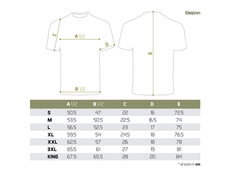 Sam T-shirt jest wysokiej jakości, podobnie jak trwały kolorowy nadruk. Dostępna jest w szerokiej gamie rozmiarów, od S do KING SIZE (odpowiednik 4+XL, który w większości krajów oznaczany jest jako XXXXXL). Model King Size wygodnie pasuje nawet na największych wędkarzy, ważących 135 kg lub więcej.