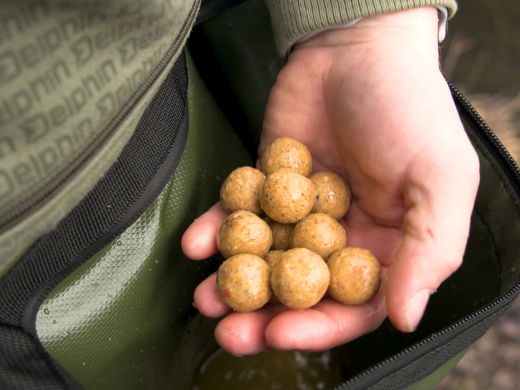 Dzięki wodoodpornym materiałom można bezpiecznie przechowywać wstępnie namoczone lub dociążone kulki proteinowe bez obawy o wyciek. Przednia część torby jest wyposażona w gumową pętlę na procę lub rurę zanętową. Pasek o regulowanej długości z solidnym klipsem mocującym zapewnia bezpieczne dopasowanie do talii.