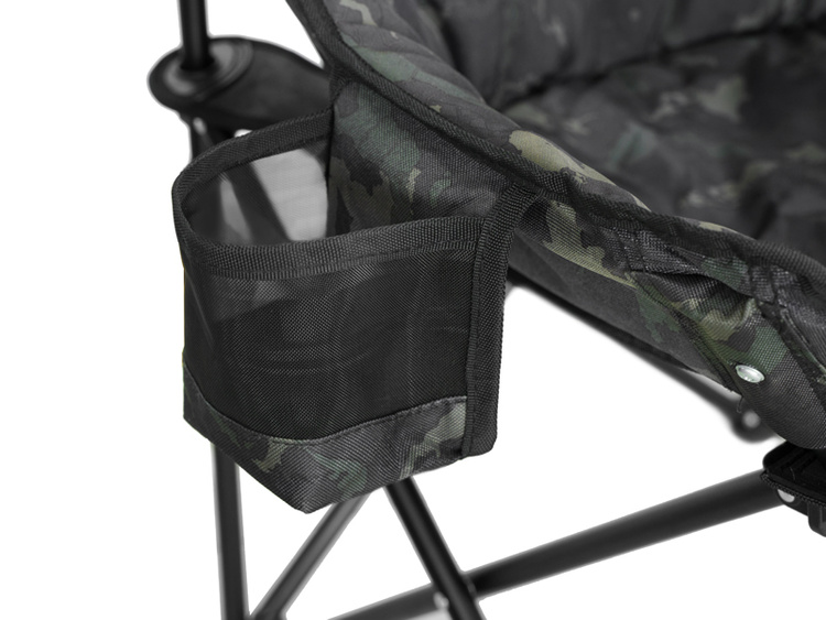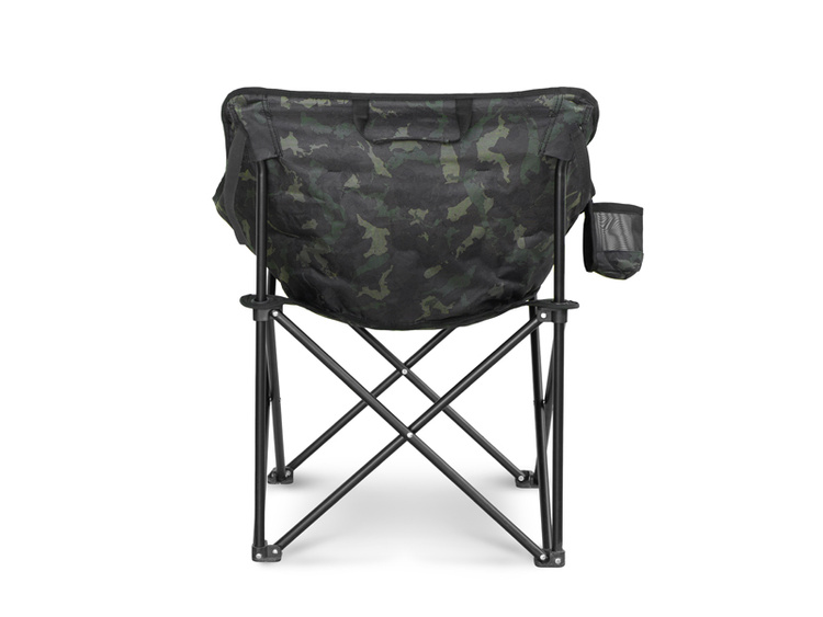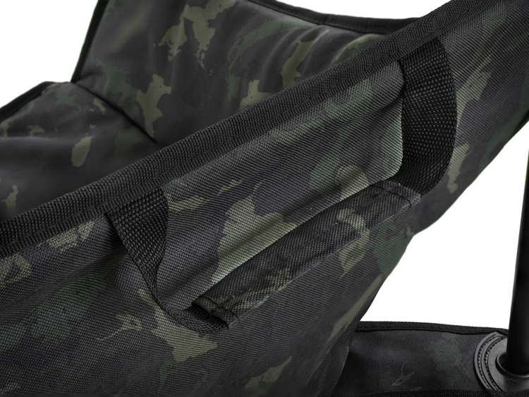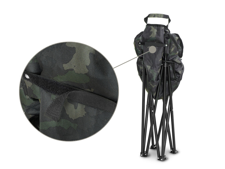Wygodę zapewnia miękka wyściółka wewnątrz oraz na całym obwodzie materaca. Pokrycie wykonano z wytrzymałego materiału 600D, z nadrukowanym autorskim kamuflażem BANX, który nadaje fotelowi unikalny wygląd i zwiększa jego odporność na intensywne użytkowanie.
