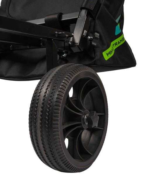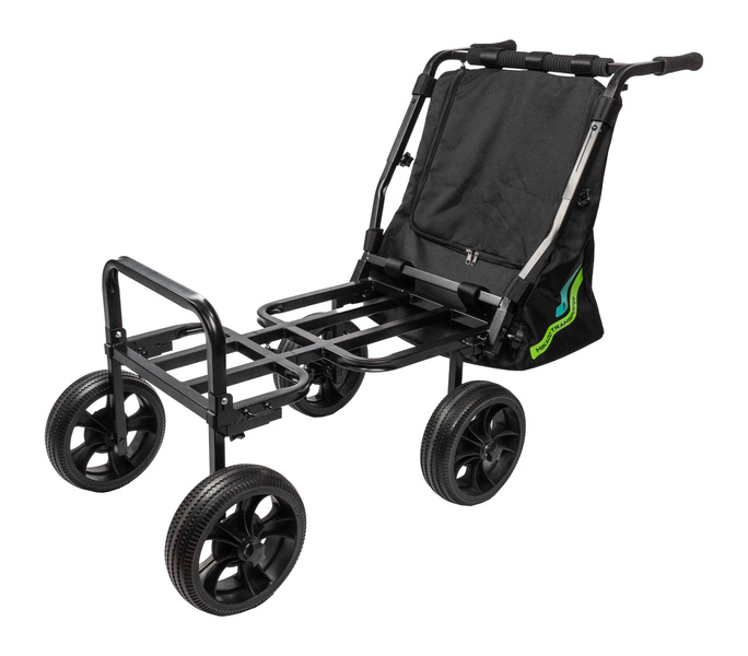T1 Transporter to komfortowy wózek z obszerną platformą o regulowanej długości oraz pojemną torbą. Bez problemu zmieści duży kosz z całym osprzętem. Posiada również wygodną regulację wysokości rączek i kompaktowe rozmiary transportowe.