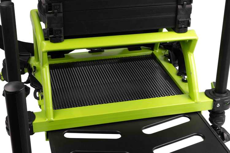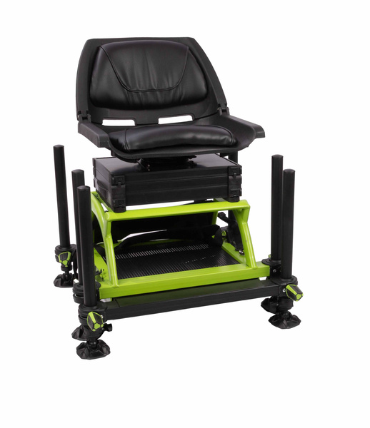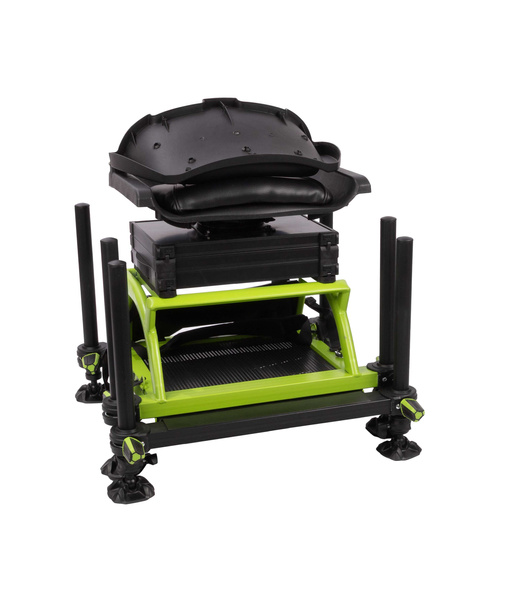 MX36 Pro to topowe siedzisko wyczynowe charakteryzujące się niezbędną stabilnością i możliwością regulacji. Wzbogacony o boczną szufladę, dodatkowe gwinty w nogach D36 oraz pojemną półkę pod obrotowym siedziskiem, na zanęty czy dodatkowe bagaże.