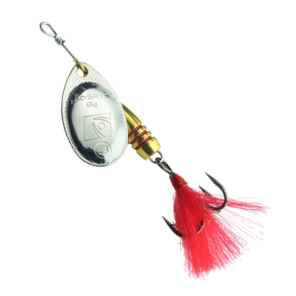 Błystka typu Aglia. Dzięki swojemu kształtowi generuje intensywne wibracje, które skutecznie wabią ryby nawet z dużych odległości. Doskonale sprawdza się zarówno na jeziorach, jak i na rzekach, również podczas prowadzenia z prądem. Świetnie pracuje przy wolnym prowadzeniu, co pozwala skutecznie używać jej także na płytkich łowiskach. Dodatkowy akcent w postaci chwosta znacząco zwiększa jej atrakcyjność. Wyposażona jest w kotwicę VMC.