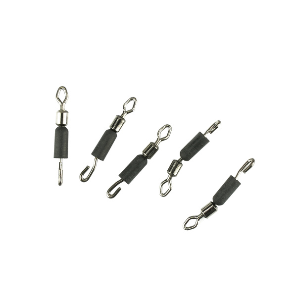 Bardzo wytrzymałe krętliki z szybkozłączką. Gumowa nasadka umożliwia łatwą wymianę przyponu, a krętlik zapobiega skręcaniu się żyłki podczas łowienia.