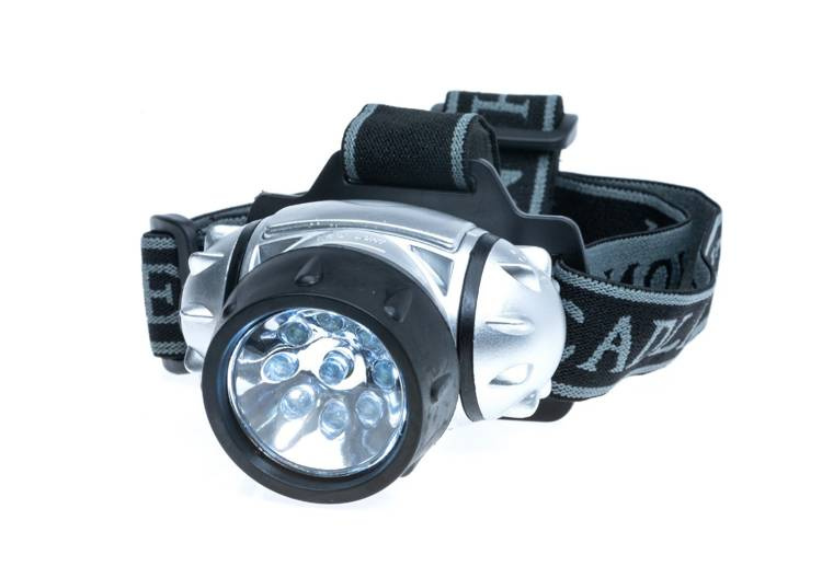 Okrągła latarka do założenia na czoło. Posiada 9 diod. Taka latarka to niezbędnik nocnych połowów.