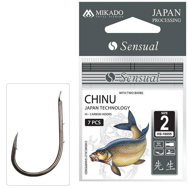 Charakterystyczny, klasyczny kształt haczyka Chinu z dodatkowymi zadziorami na trzonku. Idealny podczas łowienia na rosówki, dendrobeny czy białe robaki. Zadziory pewnie trzymają przynętę nie pozwalając jej się zsunąć z haczyka.