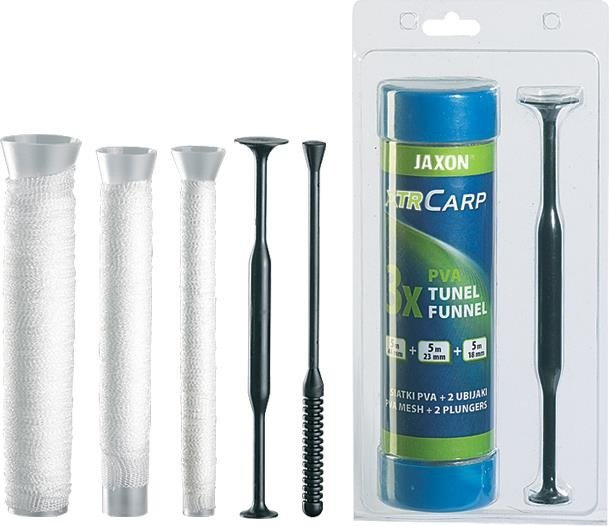 Siatka PVA w formie tunelu, umieszczona na rurze z tworzywa, w celu łatwego przygotowywania zestawów do nęcenia z ubijakiem