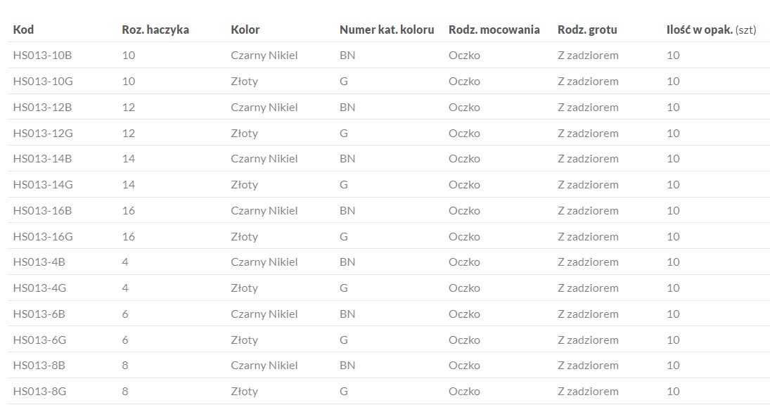 Mocny, kuty haczyk z uszkiem oraz zaokrąglonym łukiem kolankowym wytworzony z drutu o wyjątkowo małej średnicy.