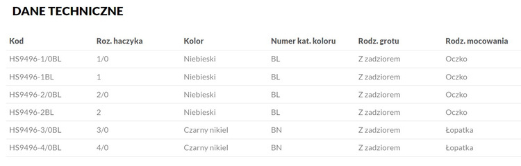 • Rodzaj mocowania haczyka - Oczko