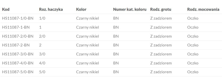 - Rozmiar haczyka - 1/0